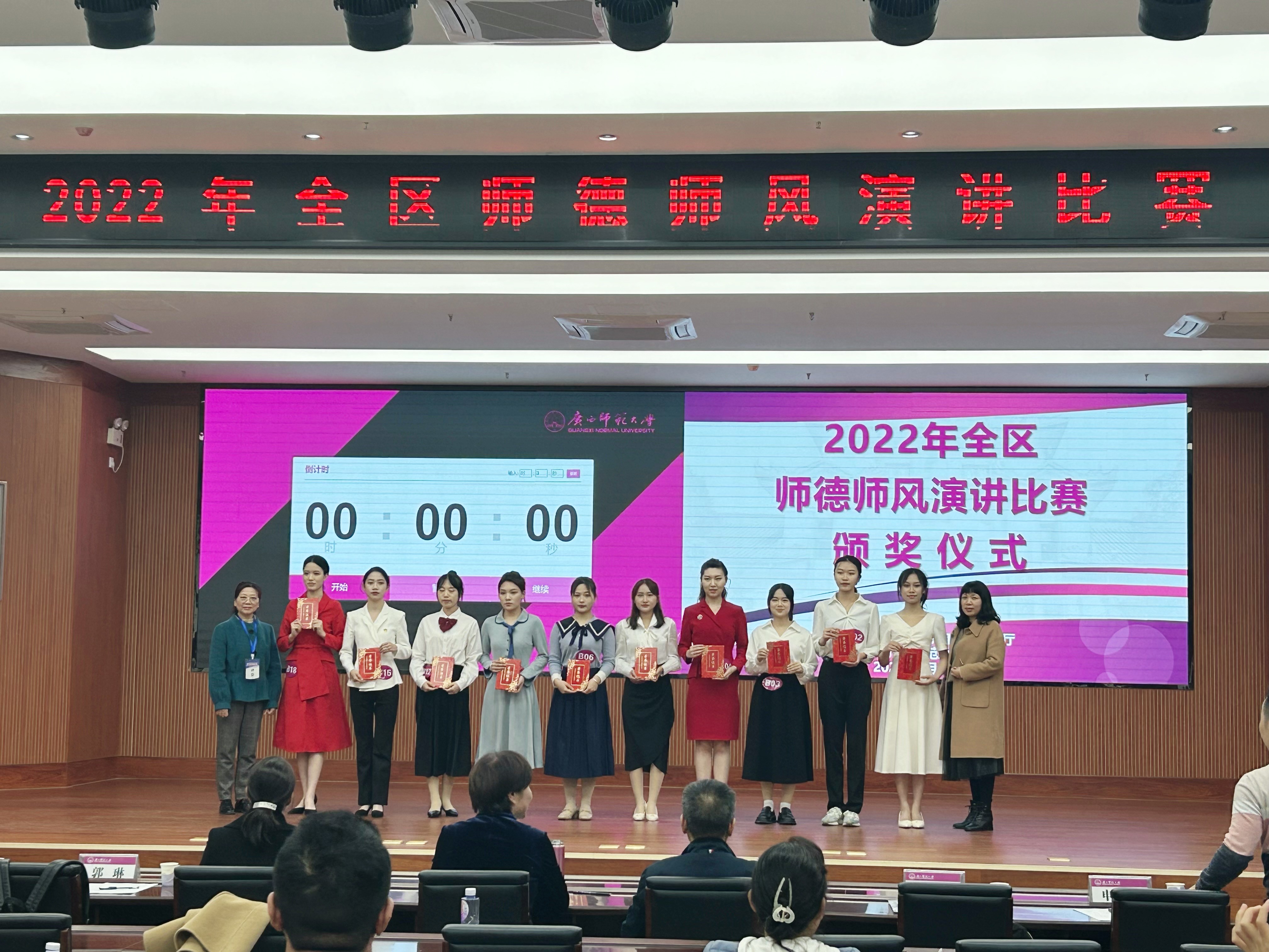 2023年3月17日-19日,由广西壮族自治区教育厅主办的2022年师德师风演讲比赛在广西师范大学育才校区举行,本次演讲比赛以“学习党的二十大精神 培根铸魂育新人”为主题。我校人文教育学院学前教育专业2003班隋媛和2101班徐梦璐参赛,其中2003班隋媛同学凭借稳定的发挥,喜获高校师范生组三等奖的佳绩。