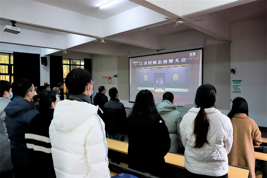 12月6日上午10时,党中央、全国人大常委会、国务院、全国政协、中央军委在北京人民大会堂隆重举行江泽民同志追悼大会。学校全体党政领导、中层干部,教职工党员、学生党员代表在西校区伦理楼107集体收听收看大会实况直播,沉痛悼念敬爱的江泽民同志。