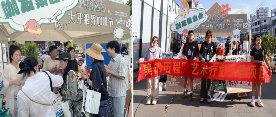 2025 年 5 月 30 日至 6 月 2 日,在北海首届咖啡节现场,王老师指导学生团队精心打造的“艺术疗愈”主题专区成为焦点。绘画创作区里,色彩在画布上肆意流淌,化作心灵的慰藉;文创手作台前,创意与匠心完美交织,成为解压的良方。络绎不绝的市民沉浸其中,在艺术创作的过程中舒缓压力,真切触摸到艺术疗愈的独特魅力。活动现场人潮如织,艺术的温度与咖啡的醇香共同勾勒出城市生活的惬意图景。据统计,活动期间,主题专区吸引了超过 5000 人次参与,得到了市民的广泛好评和媒体的高度关注,进一步提升了学校的社会知名度和美誉度。