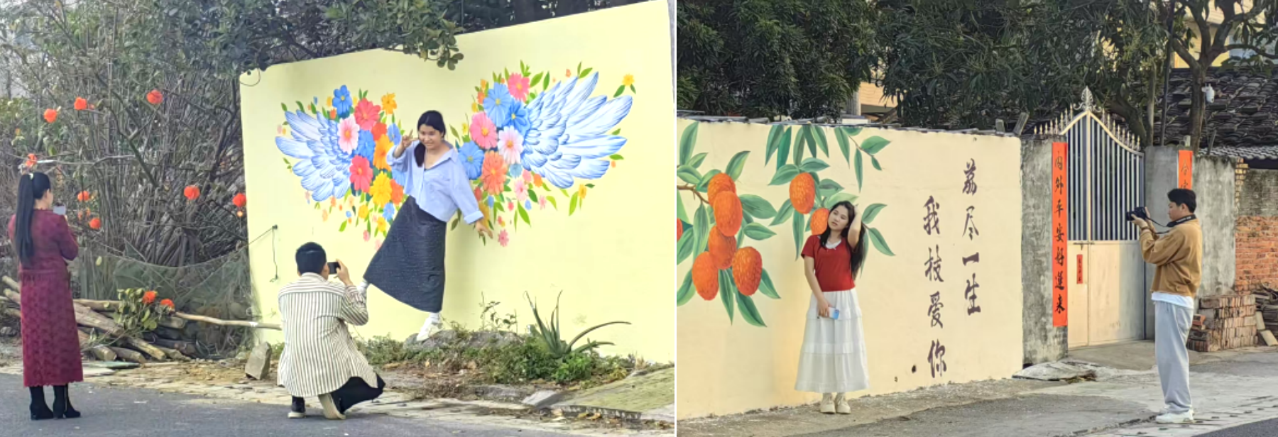 3.社会反响:在绘制过程中,越来越多的人参与进来,游客拍照打卡等。充满艺术感的墙绘迅速在社交媒体走红,成为网红打卡点,周末游客量增长显著。