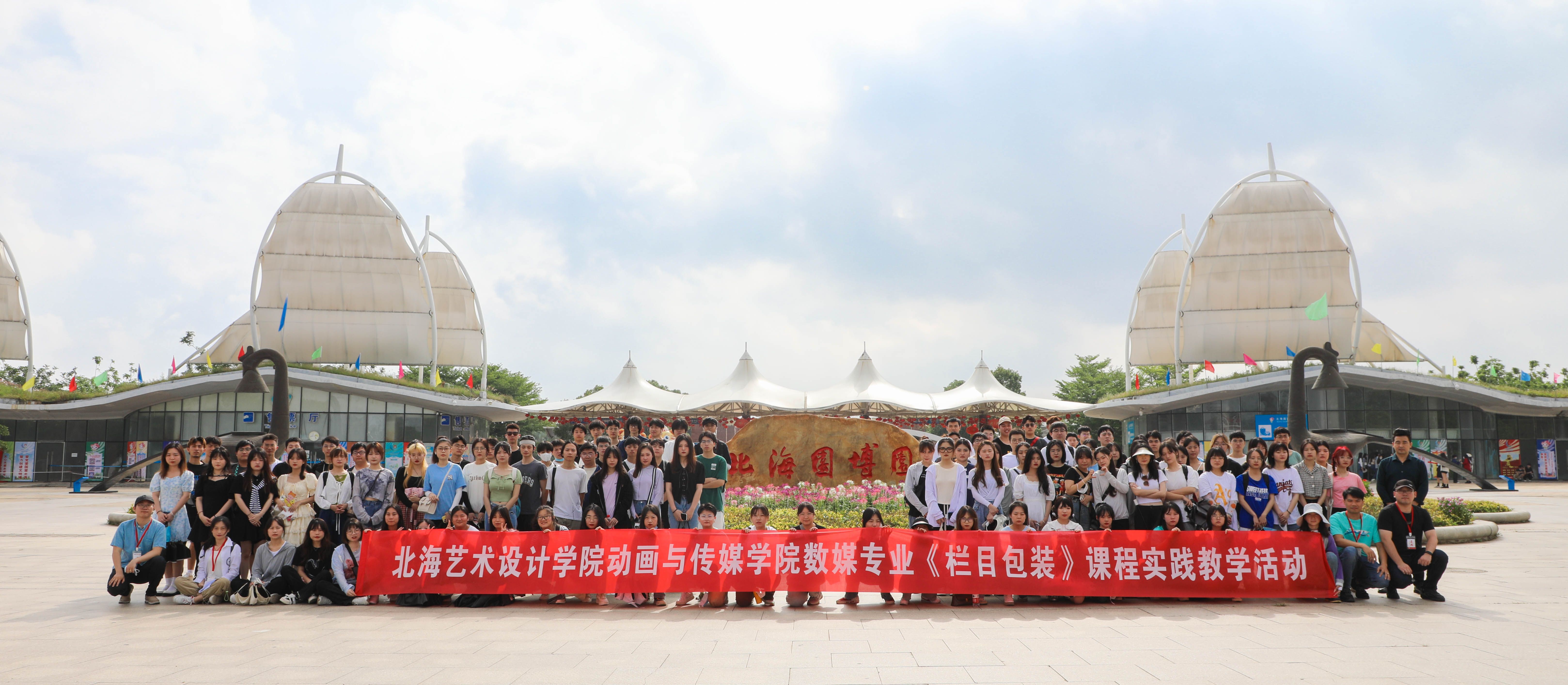 为了丰富数字媒体艺术专业实践教学内容,加强同学们的观察能力,动手能力,组织能力,于2022年5月19日上午8时-12时组织第一批数媒20级3个班共120人前往北海市园博园进行《栏目包装》课程的实践教学活动。