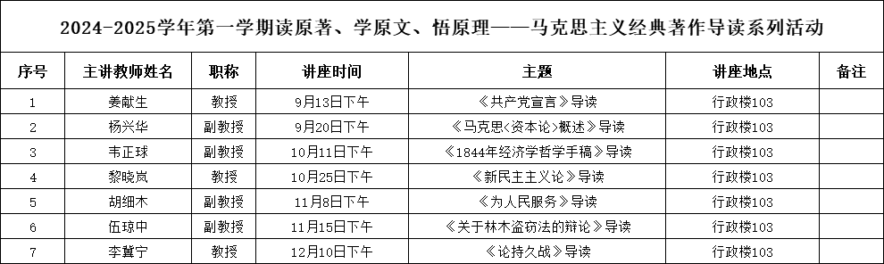 讲座预告|2024-2025学年第一学期读原著、学原文、悟原理——马克思主义经典著作导读系列活动