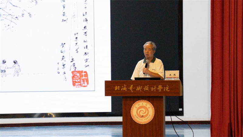 讲座伊始,王伟教授结合个人经验,以连环画的创作为切入点,分享了艺术实践的经验和领悟。他表示,人有目标,不会迷茫。相比较于浑浑噩噩虚度光阴,那些明晰自己为什么而活,踏实朝着目标前进的人,才能让自己行走的每一步都有价值。随后,王伟教授就关于中国文化主题原创内容展开讲解。他特别强调艺术创作要有发现美的眼睛,在中国传统文化中寻找灵感,还需给自己设立每日的目标,沿着既定的轨迹前行,在追逐目标的过程中不断提升自己。
