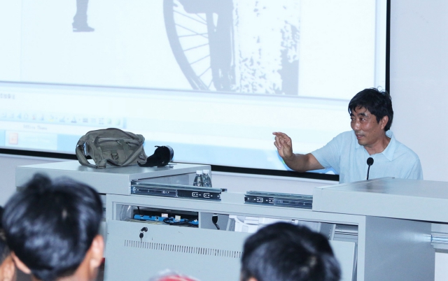 高荣生教授一进场就以风趣幽默的语言赢得了同学们的阵阵掌声。 高教授用提前精心准备的课件为大家详细说明了插图艺术,并为我们指出了再为各类物体做插图时应注意的事项。
