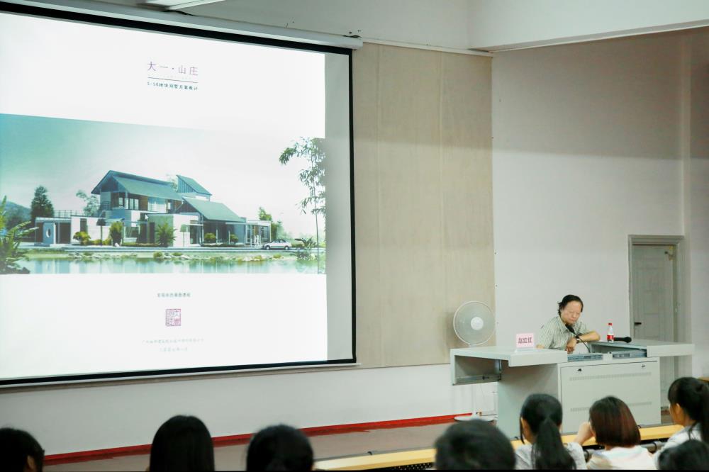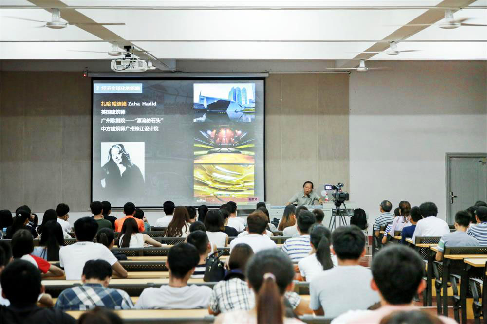 赵红红教授从中国城市化的进程、经济全球化的影响、东方人居思想、本土化的设计潮流、地域化的设计创新五个方面进行分析探讨,给在座师生展示了许多经典的案例,并就如何对本土文化进行传承和创新进行了诠释,提出了独到的观点和看法。在讲座中,赵教授指出现代建筑设计的不足,即设计缺乏创新,千城一面、千楼一面的现象层出不穷。同时赵教授通过广州南昆山十字水生态度假村细讲解了地域化建筑设计的特征,向我们阐述了现代建筑设计的发展方向,即在传承传统文化的基础上加以创新深化,融入现代化设计的元素。在最后,赵教授激励中国的建筑师要为走向世界做理论准备,给我院学生树立了新的奋斗目标。