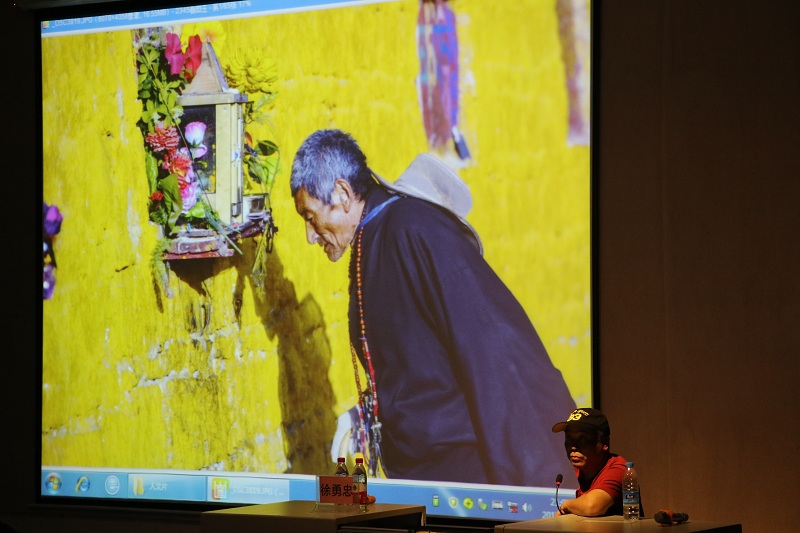 摄影在人文。因为摄影,每个镜头下的生活故事都被永久地记录成诗。有面带愠色,正对年轻的后辈说教的老者;有拒绝施舍,抱着小羊淳朴的藏族姑娘;有双手紧握,虔诚祈福的藏族中年教徒;有眺望远方,坐在家门口的石墩上等待儿女归家的老人……徐教授说道,这些生动、富有韵味的瞬间,都是需要用心地去感受生活,体验生活才能得来的。而摄影,它便把这种真实定格下来,最终呈现在人们的视野里。
