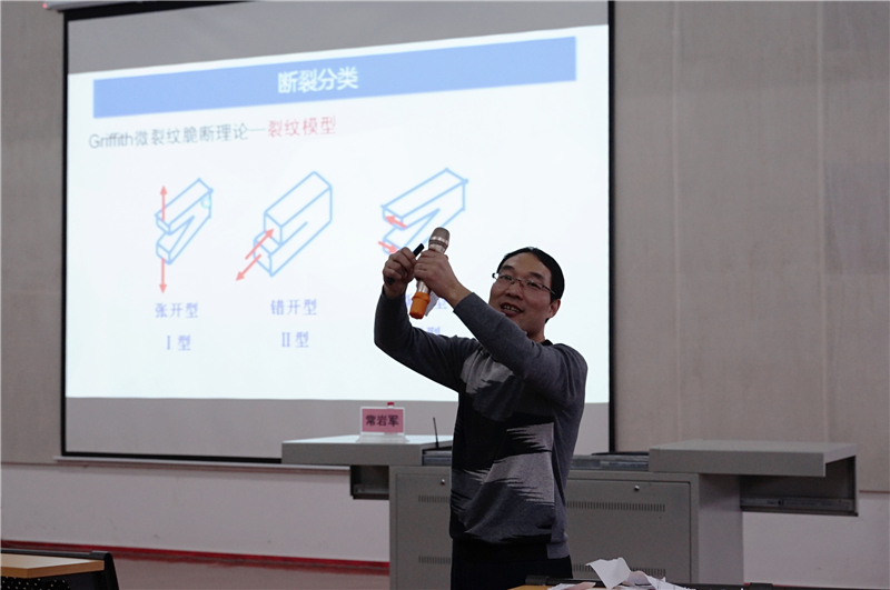 讲座过程中,常岩军教授与同学们分享了有关断裂力学的有趣的研究实验与研究方法,让同学们对断裂力学研究有了更多的认识。常教授强调,在建筑物施工过程中一定要注意建筑的防震构造设计,前期要进行合理构造,注重建筑的坚固设计,减少建筑断裂损伤现象的产生。