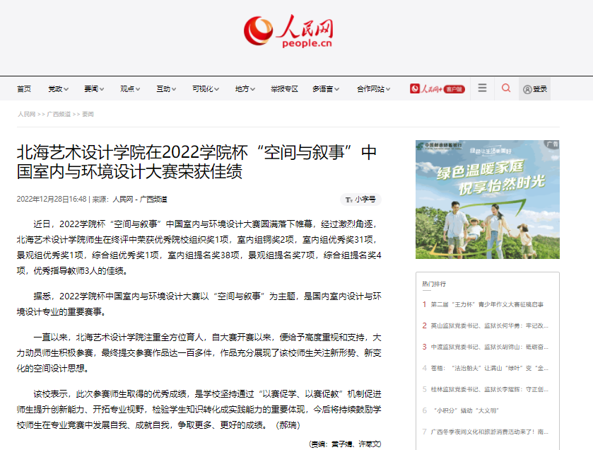 人民网:北海艺术设计学院在2022学院杯“空间与叙事”中国室内与环境设计大赛荣获佳绩