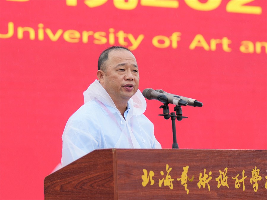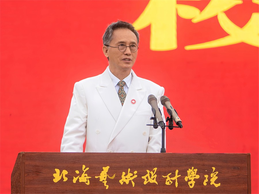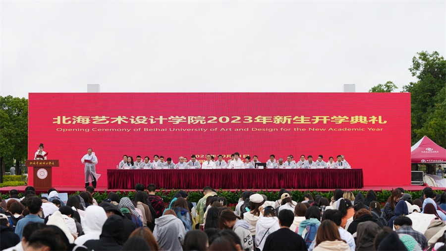 10月11日上午,我校在园博园校区蓝天白云广场举行2023年新生开学典礼。清华大学学术委员会副主任,原中国服装设计师协会主席,原清华大学美术学院党委书记、院长,北海艺术设计学院顾问委员会副主任李当岐教授;英国德比大学副校长亚历山大教授;北京邮电大学原党委书记王亚杰教授;原北京化工大学教授、国家特殊津贴专家曹维良教授;西北工业大学北京研究院院长方文杰教授;学校董事长郑念贻及学校党政领导范徽忠、卢新华、彭仁、胡胜、陶立阳、邱杰、黄侃明、刘朝雄、包建明、何煜、王斌等出席典礼,有关职能部门负责人、各二级学院负责人、教师代表和2023级3878名新生参加典礼。典礼由学校党委书记范徽忠主持。