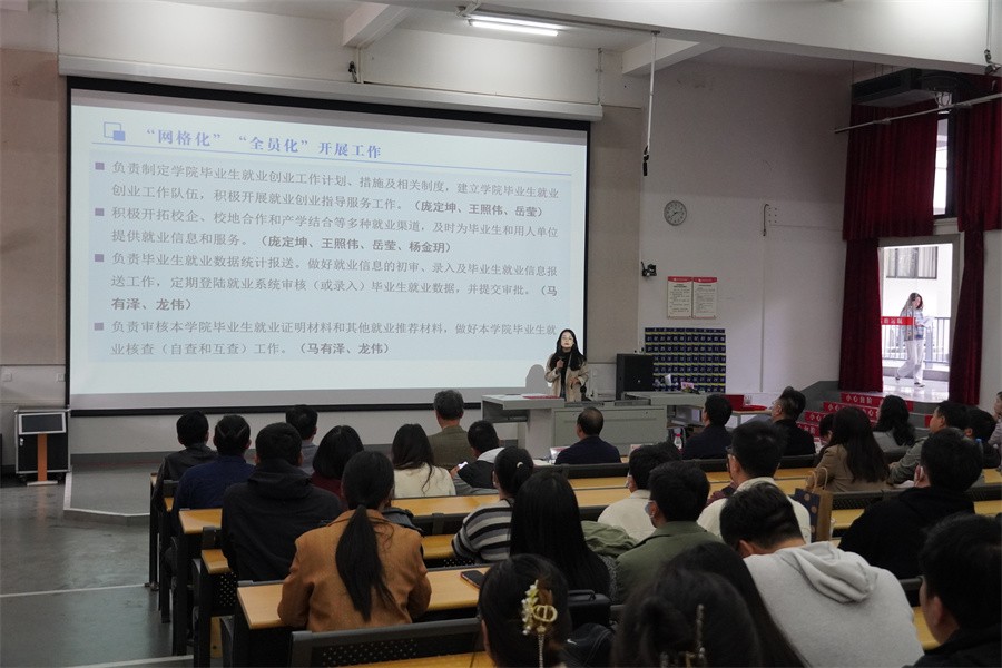 党委书记范徽忠指出,做好高校毕业生就业工作,关键在落实。始终把就业工作摆在突出位置,科学研判就业形势,持续在拓宽就业渠道、帮扶重点群体、加强指导服务等方面下功夫、出实招,着力推动毕业生更加充分更高质量就业。他提出了三点要求:一要提高政治站位,加深认识就业工作的重要性。把就业工作放在整体大局中考量,真心实意、真抓实干做好稳就业工作;二要聚焦重点任务,强化党政合力确保落地见效。落实责任机制,实行“责任到人、包干到户、网格管理”的全员参与工作模式,做到“就业有网、网中有格、格中有人、人尽其责”的全员管理格局。三要拓宽就业渠道,不断提升就业服务水平。完善就业资源开发机制,把拓渠道作为促就业的首要工作,精准把握学生需求,提升就业服务质量,引导更多毕业生到基层就业创业。