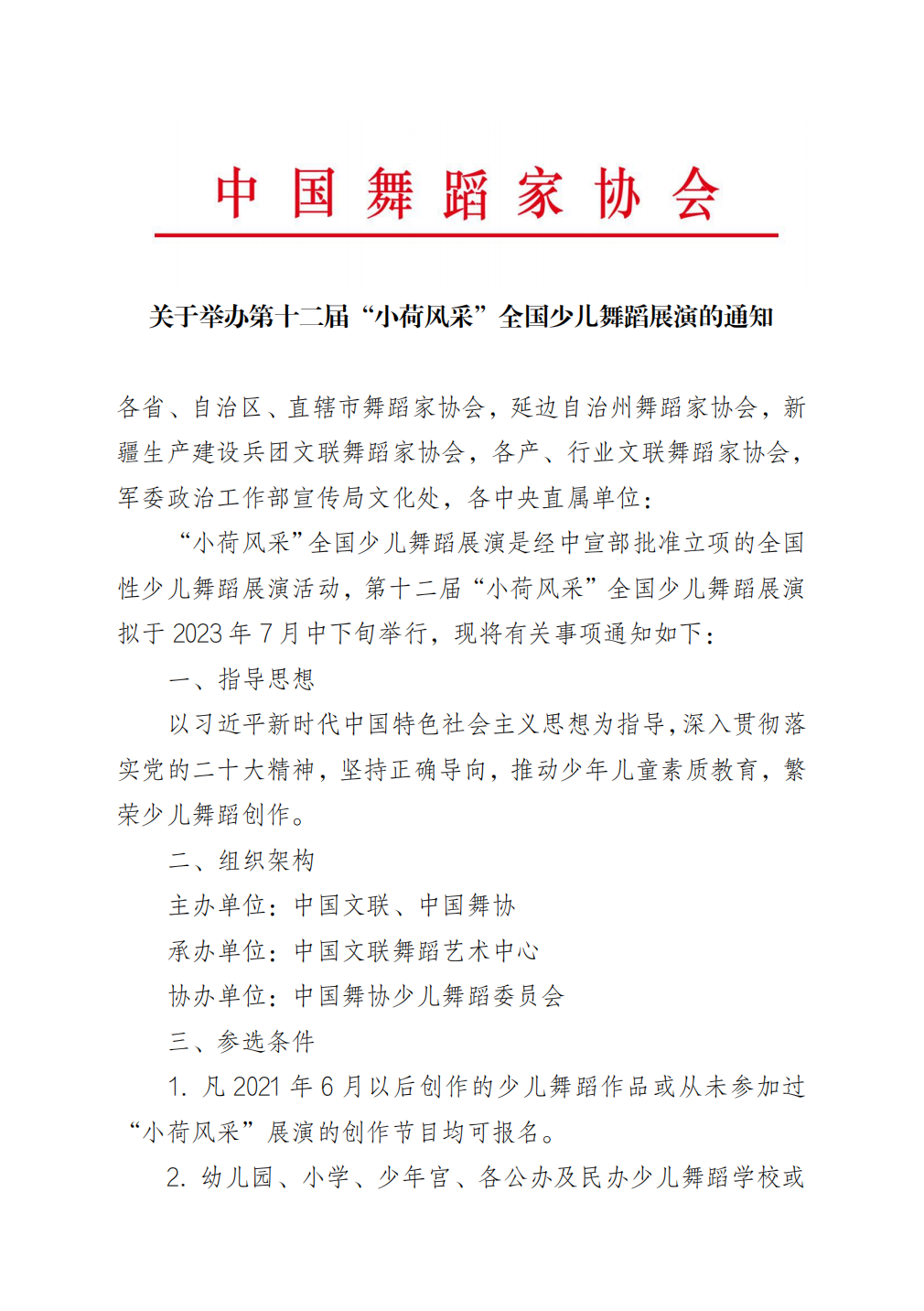 关于举办第十二届“小荷风采”全国少儿舞蹈展演的通知