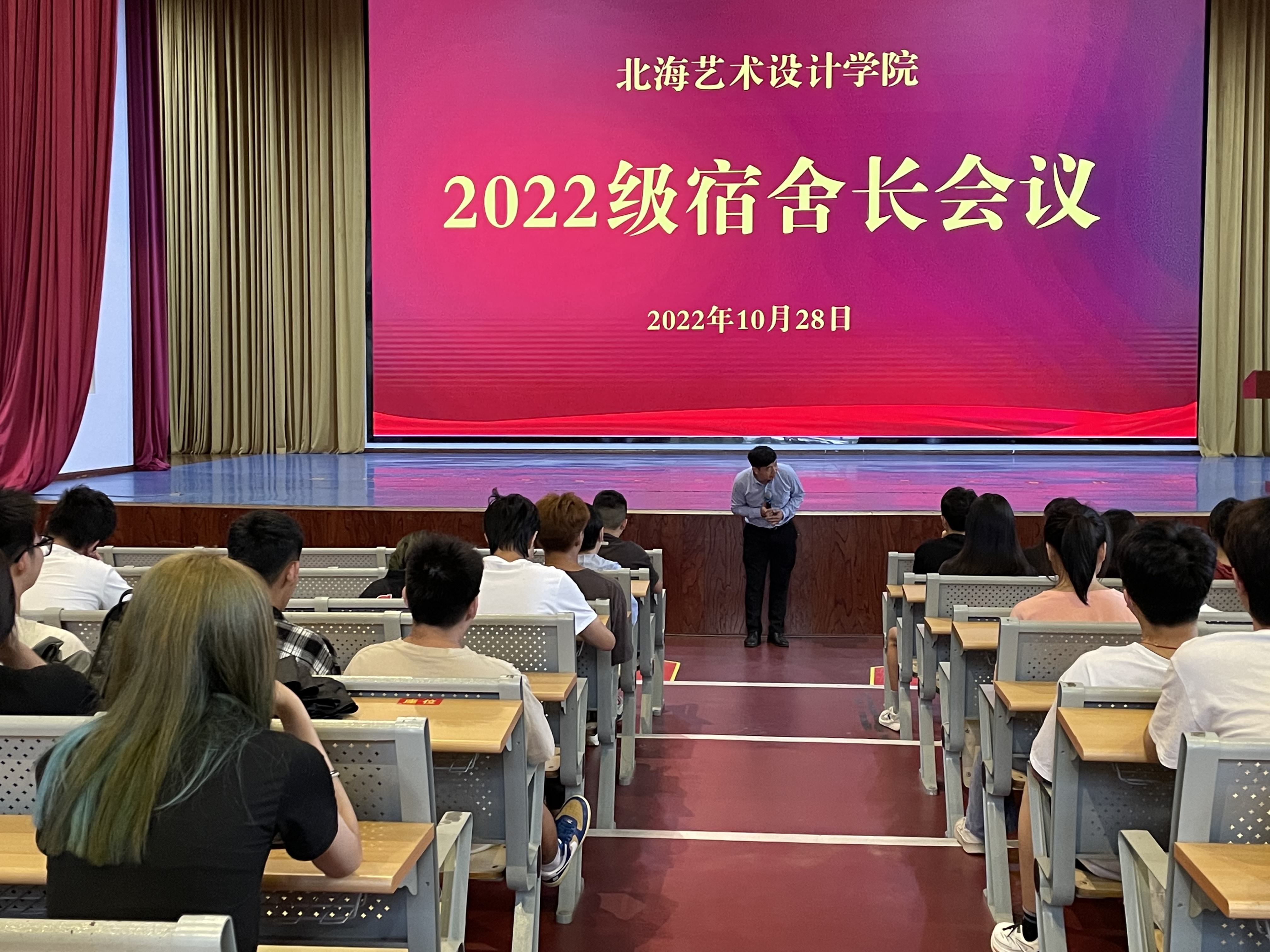 为增强学生安全与校园安全意识,进一步应对校园安全与寝室安全需要,规范宿舍日常管理,营造良好的寝室氛围,发挥寝室长作为“领头羊”的模范引导与服务作用,我校10月28下午西校区大礼堂召开北海艺术设计学院2022级新生宿舍长大会。