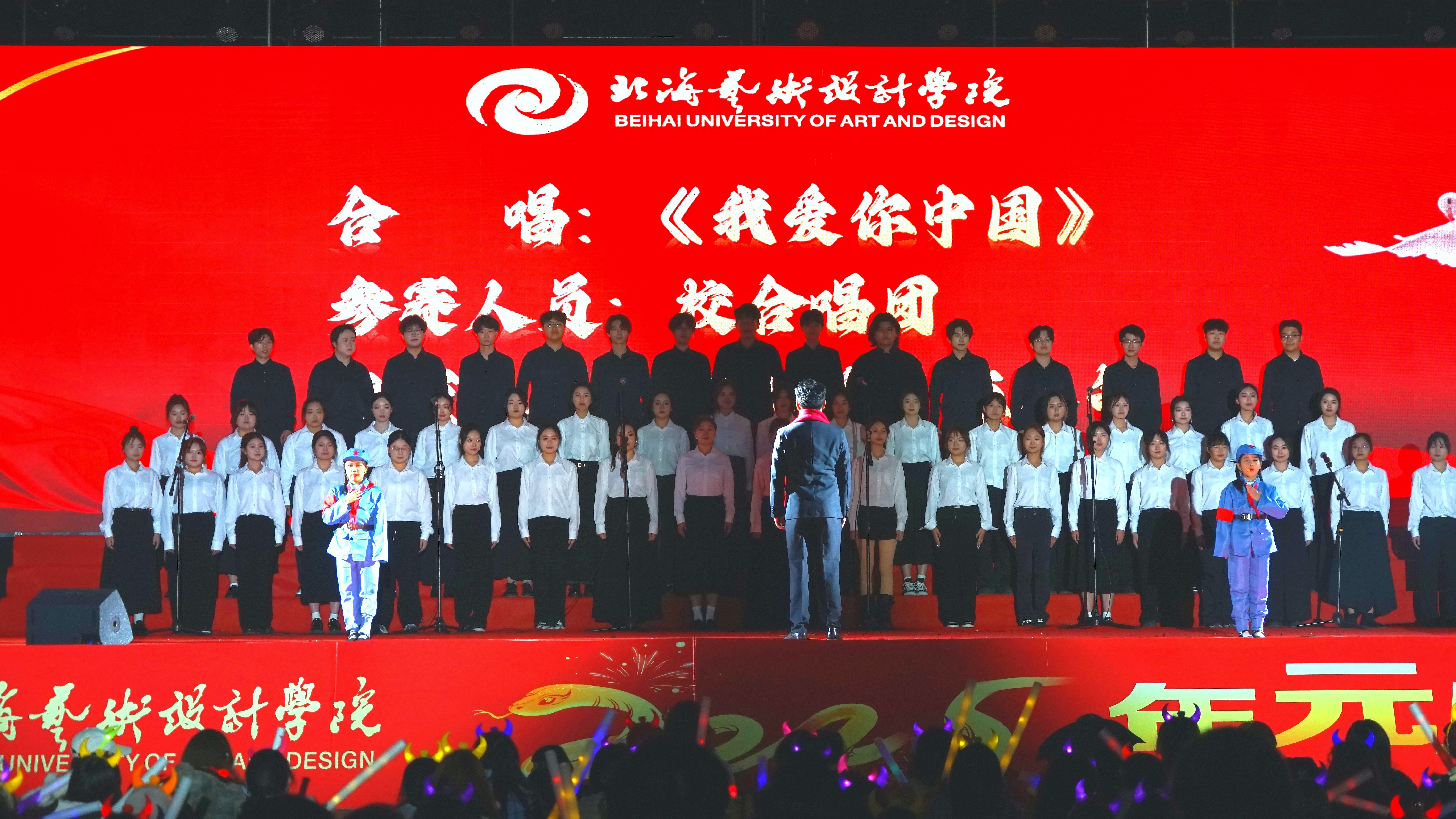 合唱《我爱你中国》则将晚会的气氛推向了高潮,校合唱团和观众一起高唱,表达了对祖国的热爱和祝福之情。