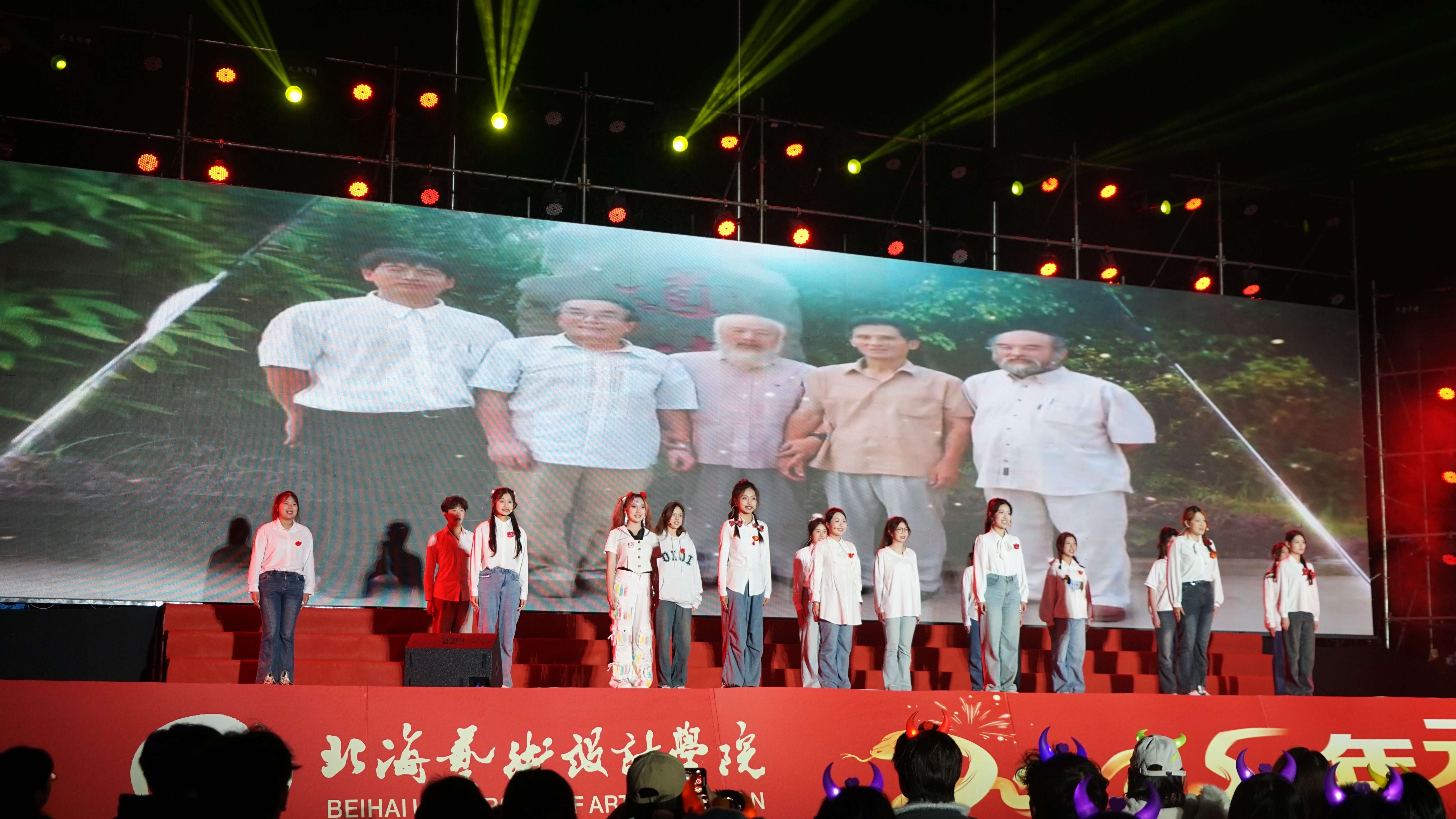 出席本次晚会的领导有学校校长卢新华、常务副校长胡胜、党委副书记陈毅华、党委副书记彭仁、党委副书记刘承初、副校长陶立阳、副校长包建明、副校长刘朝雄、纪委书记王照伟、总督学王斌及各处室、二级学院领导。此外,还邀请到了两位重磅嘉宾,原清华大学副校长、北海艺术设计学院顾问委员会主席王明旨教授;香港理工大学学术带头人、王佳教授。