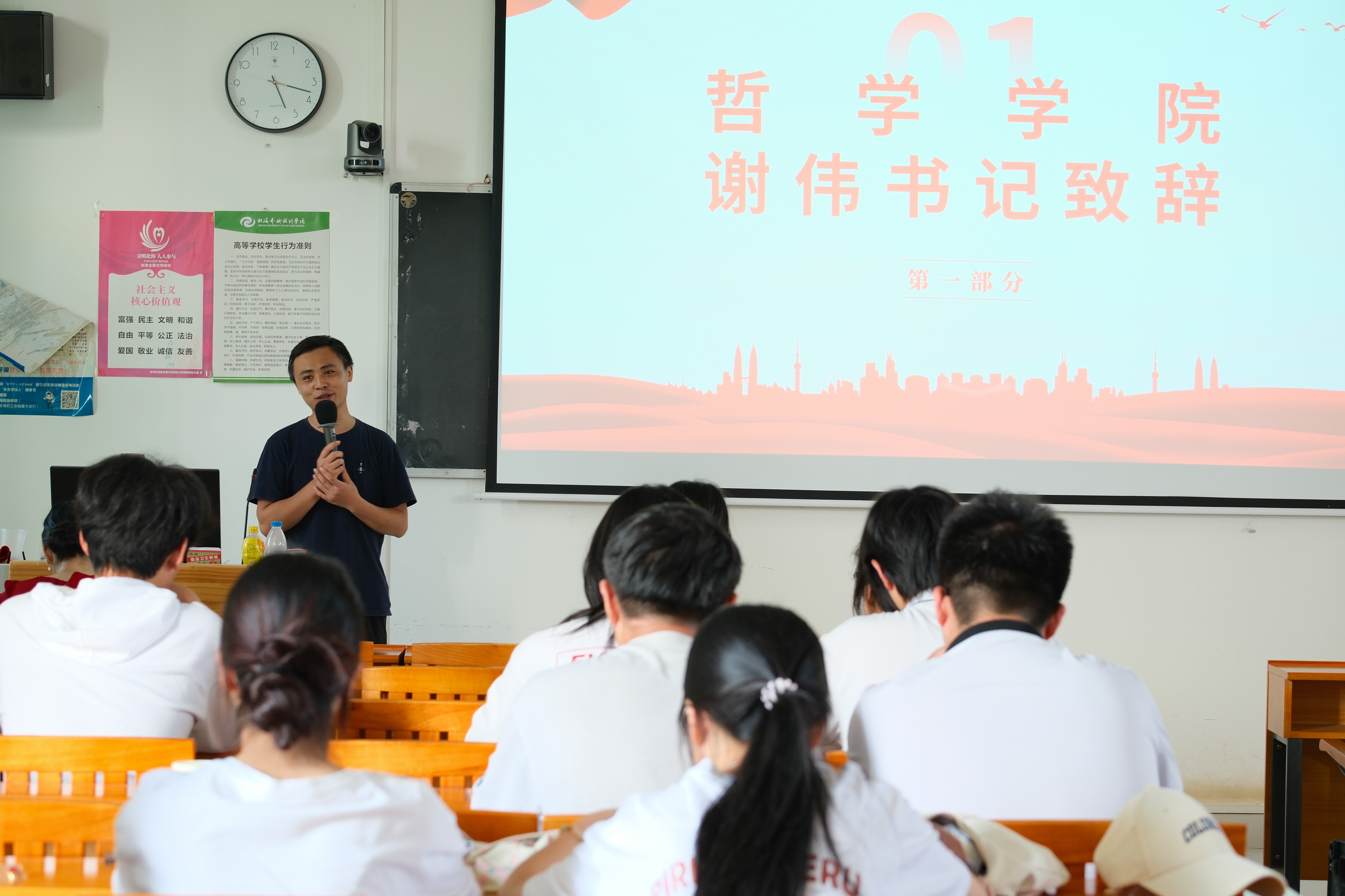 首先,哲学学院谢伟书记发表致辞。他指出,理论的价值在于指导实践,希望学员们将所学所思转化为实际行动,在今后的学习、工作和生活中主动运用马克思主义立场、观点、方法分析解决问题,以更高标准提升能力素养,在服务同学、奉献社会中彰显青年骨干的先锋作用,让理论学习成果真正转化为成长成才的强大动力。
