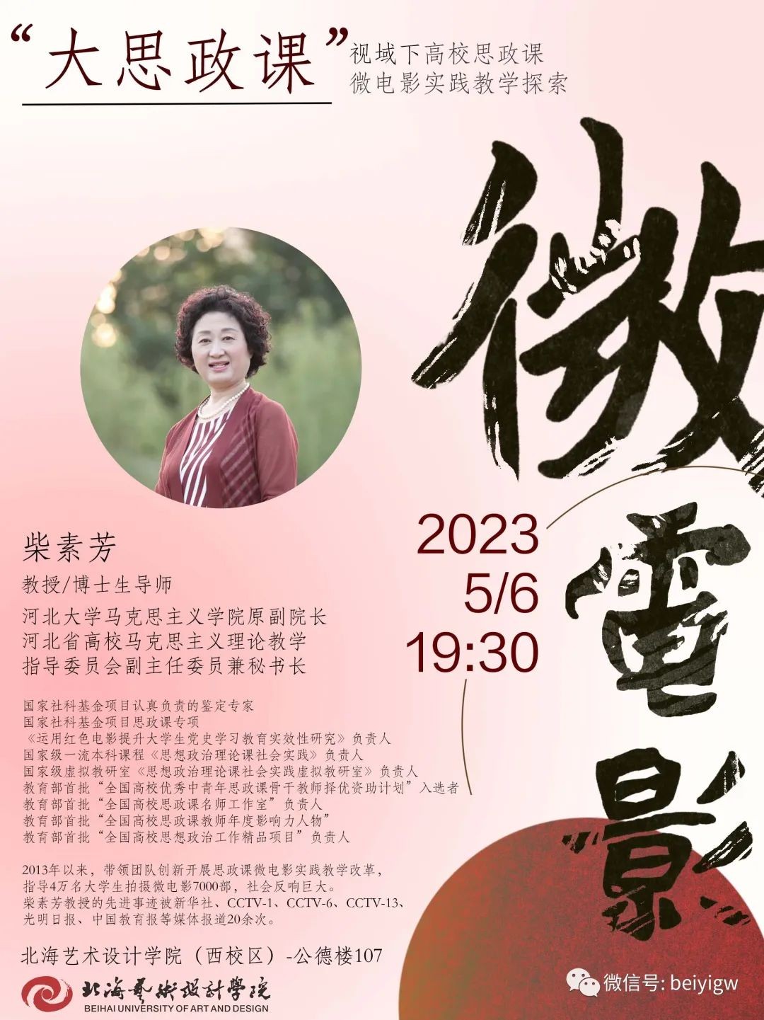 讲座预告|柴素芳《“大思政课”视域下高校思政课微电影实践教学探索》