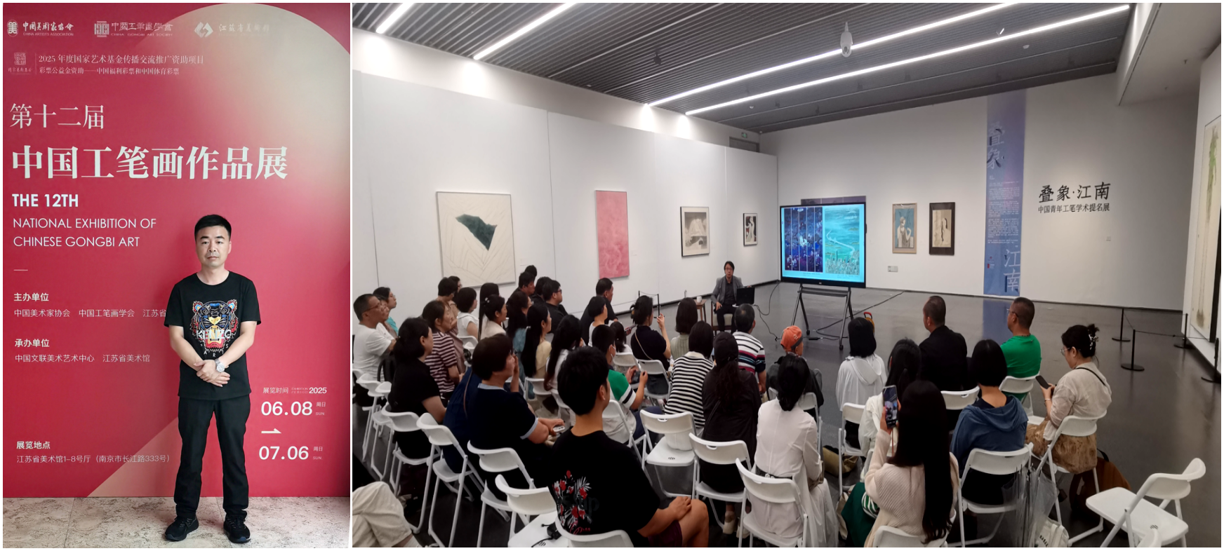 6月10 日,第十二届中国工笔画作品展在江苏省美术馆盛大开幕。此次展览由中国美术家协会、中国工笔画学会、江苏省文化和旅游厅联合主办,以“工成当代・固本开新” 为时代命题,集中呈现了中国工笔画在新时代语境下五年来的创作成果。我校教师陈建江作品《德峨赶圩之蓝靛集市》入选此次展览,并受邀参与此次盛会,在展览中汲取艺术养分,并通过学术交流活动拓宽创作视野。