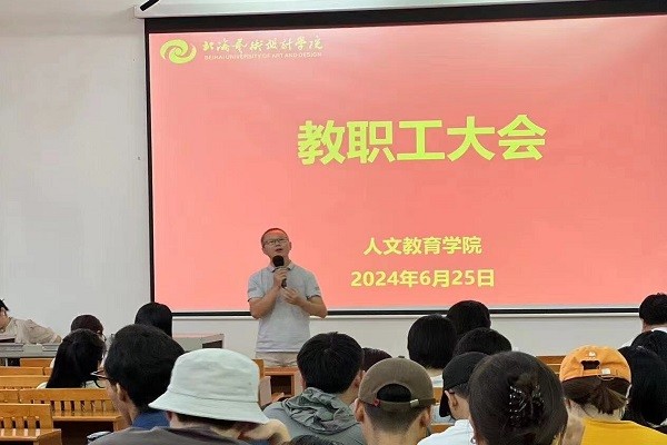 最后,分管校领导王斌总督学对我院各位教师寄予希望,王总督学指出,教育事业关乎人才培养、科学发展和文化传承各项工作,希望每位教师都能够认清形势,准确定位,扎根北艺,建设北艺,共同展望学校未来愿景,成为高水平的高校教师。(王小勤/摄)