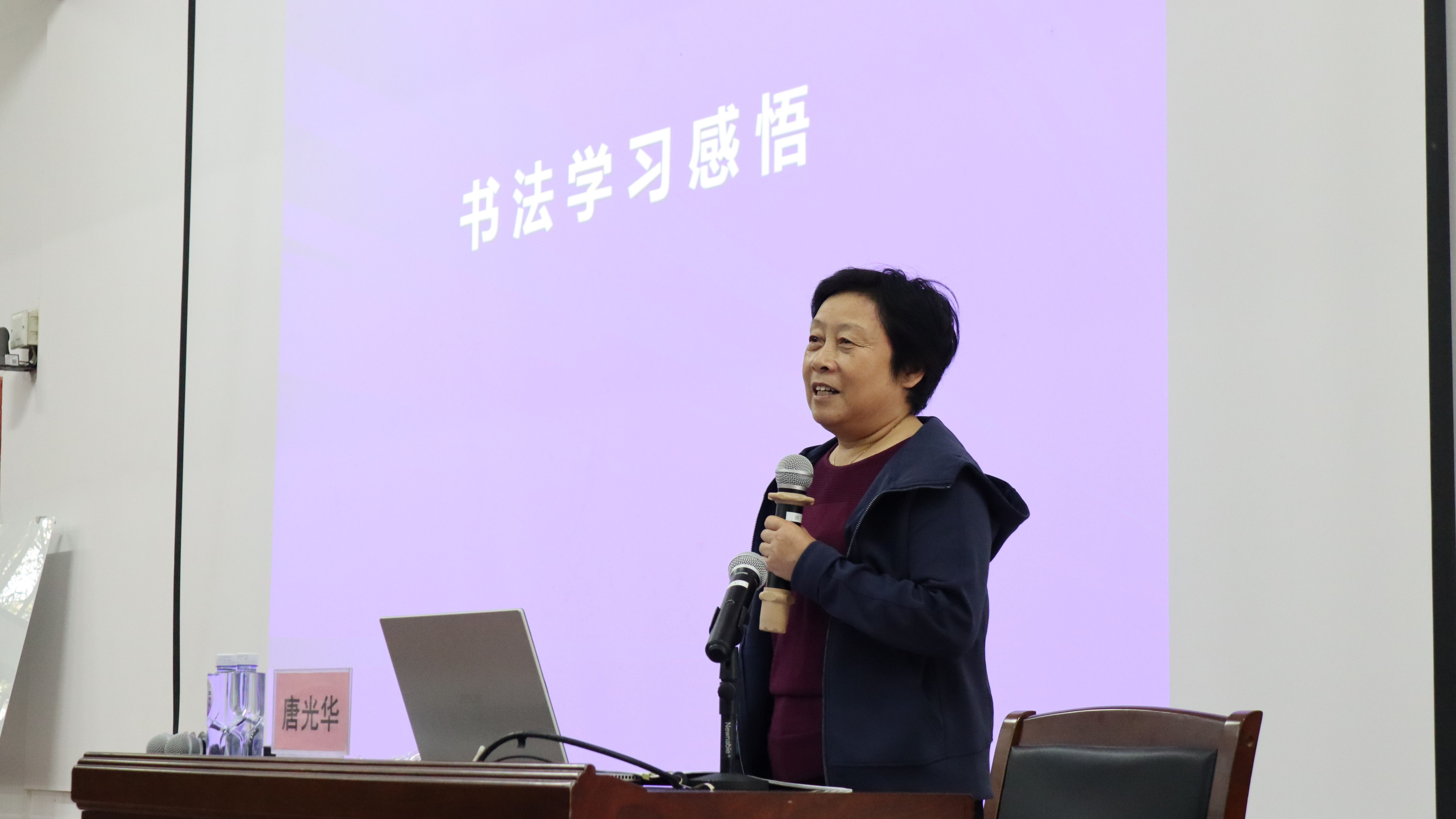 在讲座中,唐光华女士凭借其深厚的书法造诣和独到的艺术见解,同时结合自己的书法学习和创作经历,深入浅出地为师生分享书法艺术魅力和学习书法的心得体会。