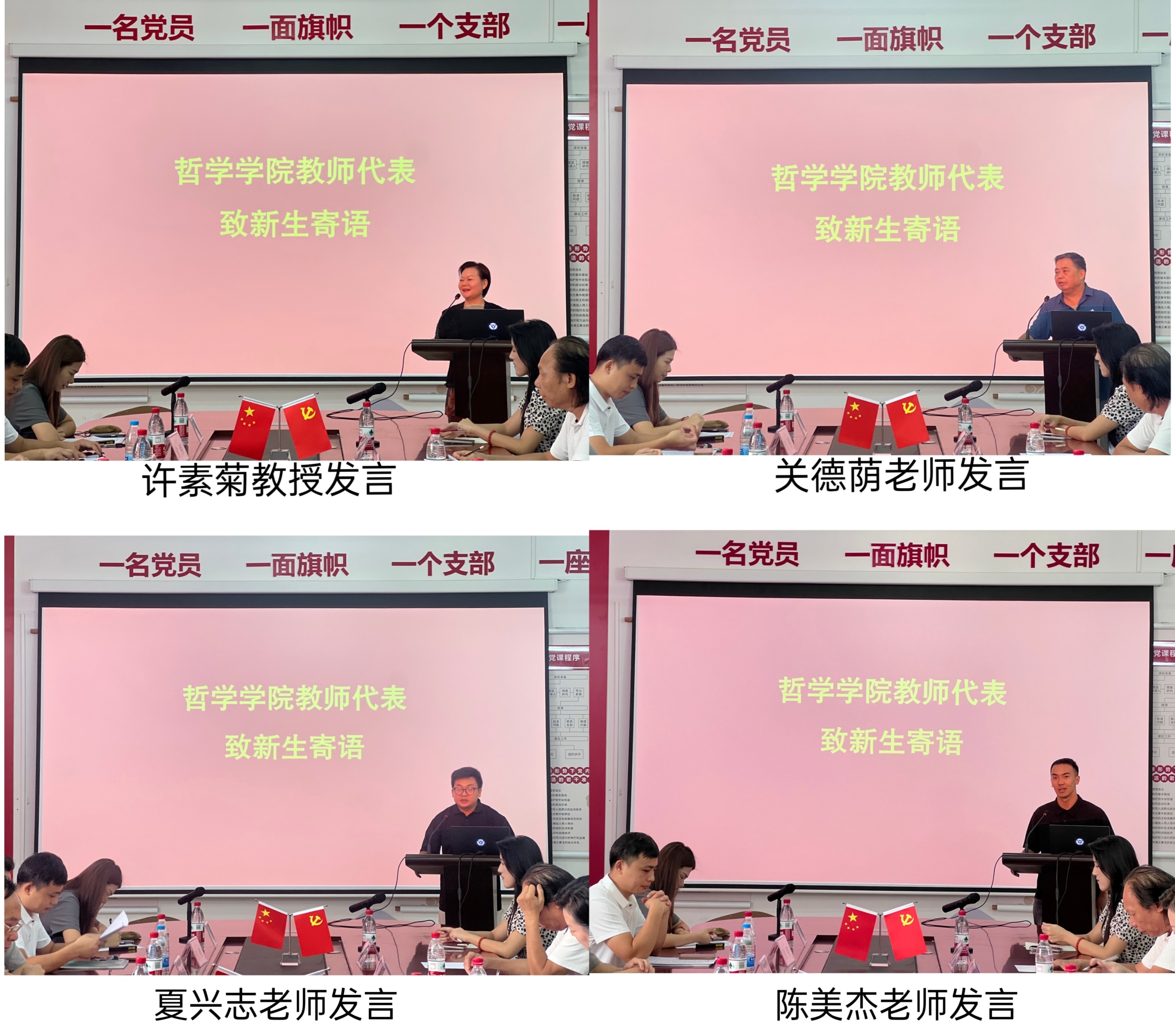 会议第二项议程,教师代表向新生寄语。外聘教授代表许素菊教授在发言中表示,学哲学不仅是学知识,更重要的是学会思考。她鼓励同学们在努力培养哲学思维、批判性思维和人文关怀中增长智慧。哲学之路漫漫,探索永无止境,她寄望新生们在此埋下热爱哲学的种子,以勤奋和汗水浇灌,锚定远大的目标,持之以恒的奋斗,在哲学的海洋里遨游,书写自己精彩的哲学人生。关德荫老师在新生寄语中强调,大学是审视自我,探索生命意义的黄金阶段,愿同学们时刻保持对生活的反思与追问,不要随波逐流,在哲学体系上找到属于自己的独特人生价值坐标。同时,希望同学们在钻研哲学理论时,不忘关注社会,把哲学所思转化为推动社会进步的实际行动,用哲学智慧为世界添彩。