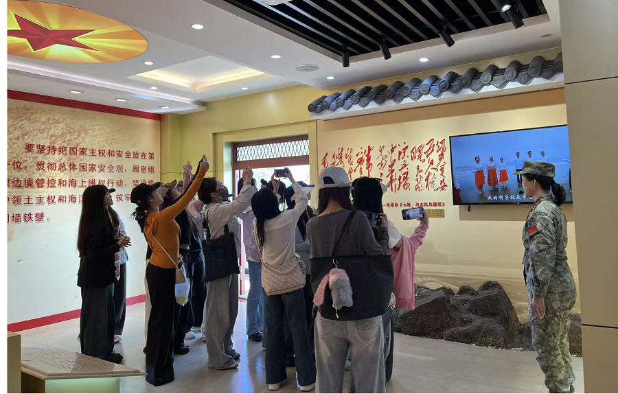 红色教育基地地角女民兵连是此次采风的重要站点。学生们在连队史馆内学习“不爱红装爱武装”的巾帼事迹,聆听女民兵们保家卫国的奋斗故事,被她们坚韧不拔、勇于担当的精神所感染。大家通过现场交流、观看纪实影像,深刻体会红色精神的内涵,纷纷表示将把这份精神力量融入舞蹈情感表达中,让红色文化通过艺术形式得以传承。在侨港博物馆,学生们沉浸式感受归侨文化的独特魅力,从侨乡建筑、民俗风情中提取地域文化符号。