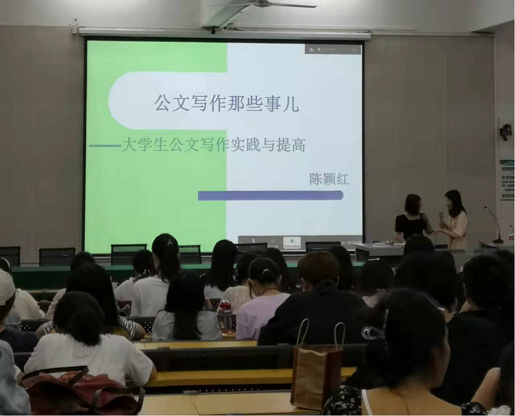 陈颖红副科长首先言简意赅地介绍了本次讲座的目的,并以亲身经历告诉同学们求职、就职过程中公文写作的重要意义和日常学习中培养公文写作能力的重要