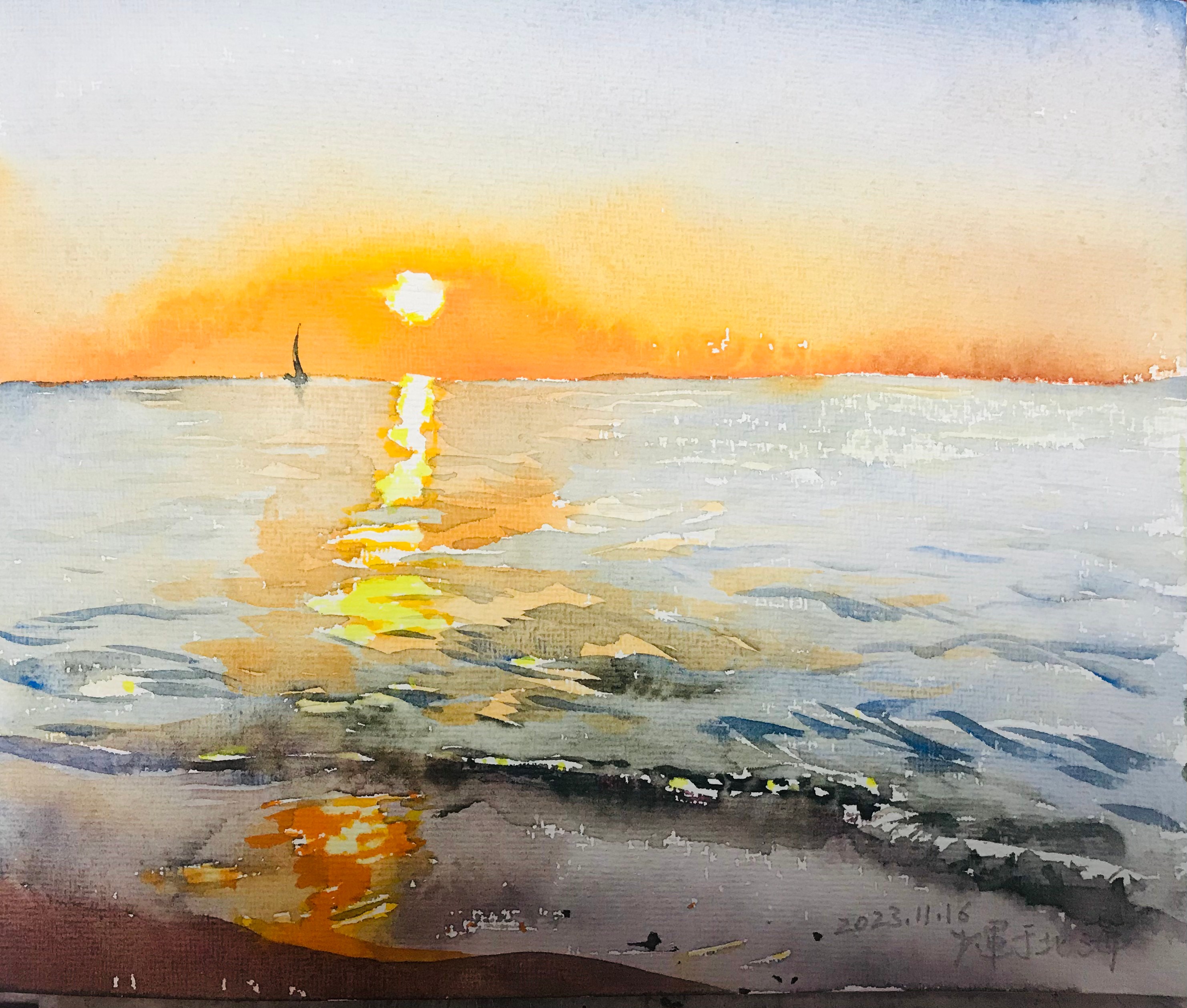 王少军  《海上落日》 水彩