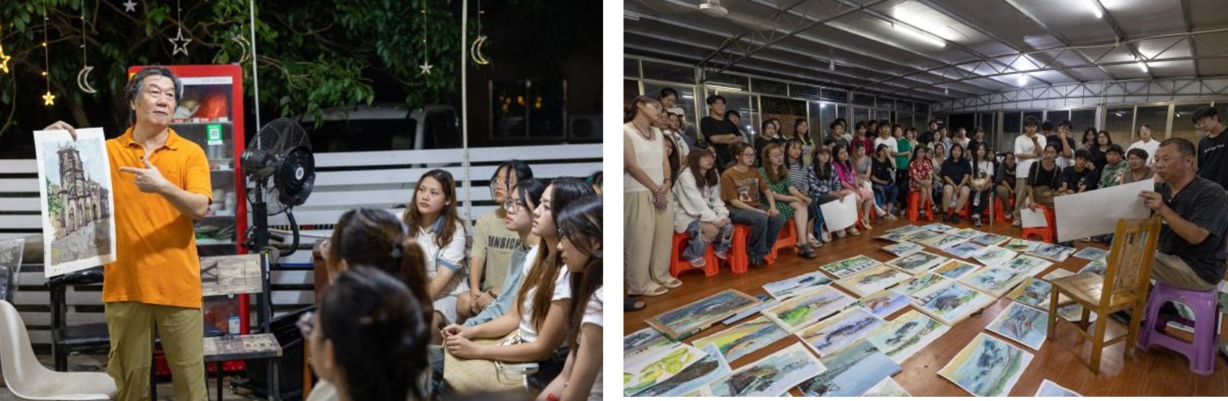 每天,教授和老师们通过现场讲授、作范画及逐个辅导等方式从取景、构图、光线、色调等方面悉心为同学们进行指导。晚上有序组织各班级开展集中讲评活动,指出画面中的优点和不足,分析存在问题,总结得失。