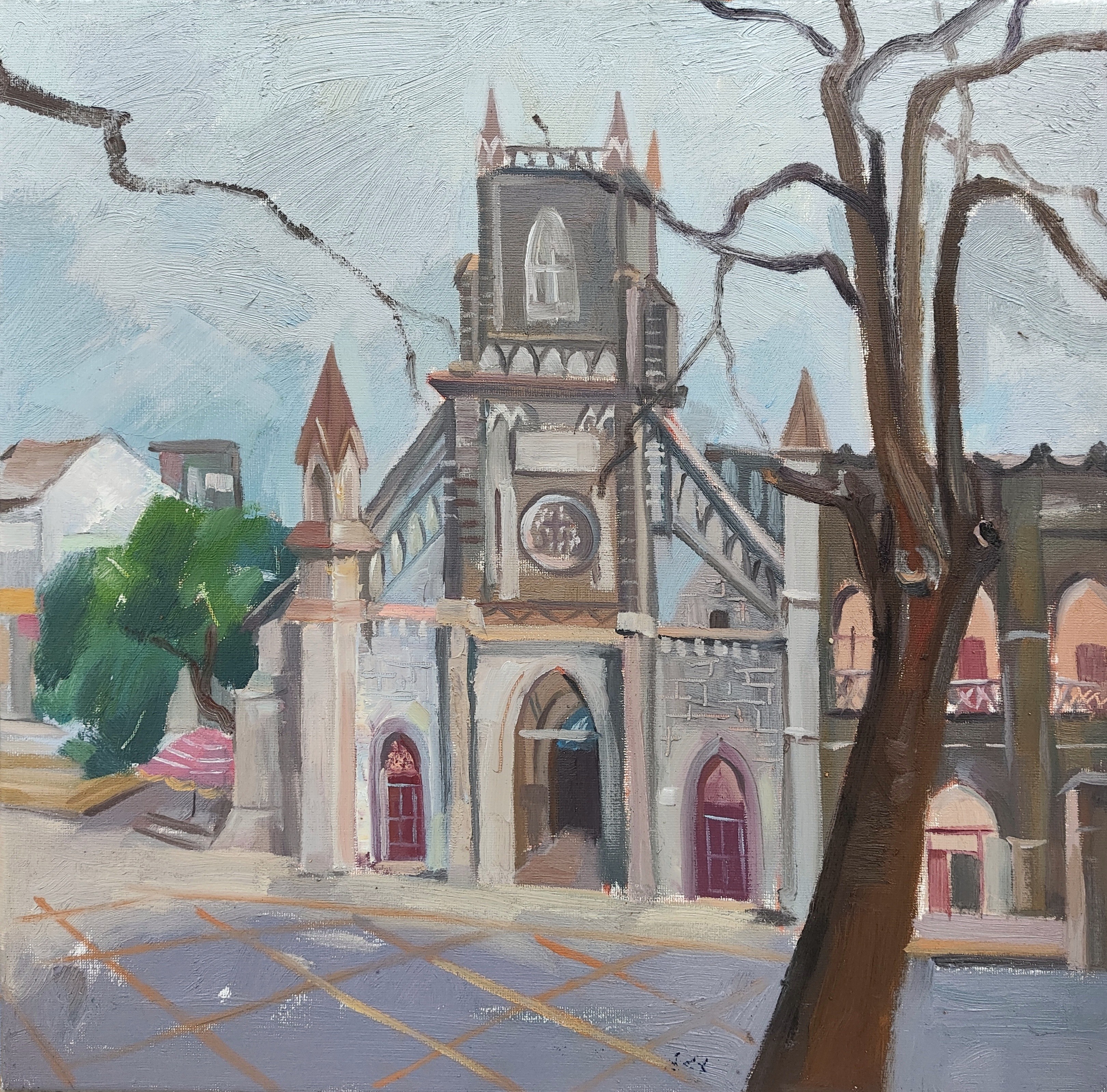 蔡国胜 《天主教堂的后院》 油画