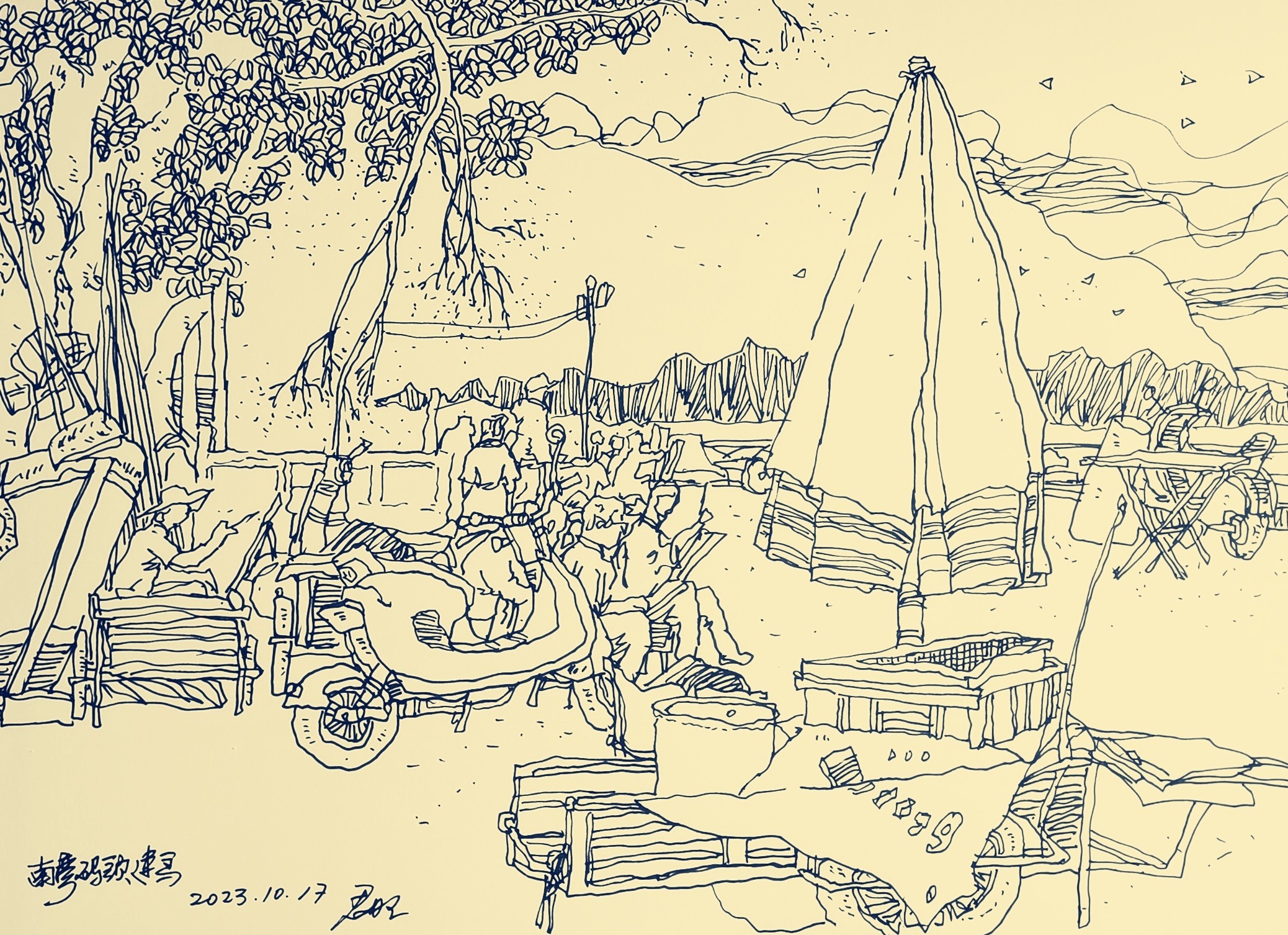 崔君旺  《滴水村》 速写