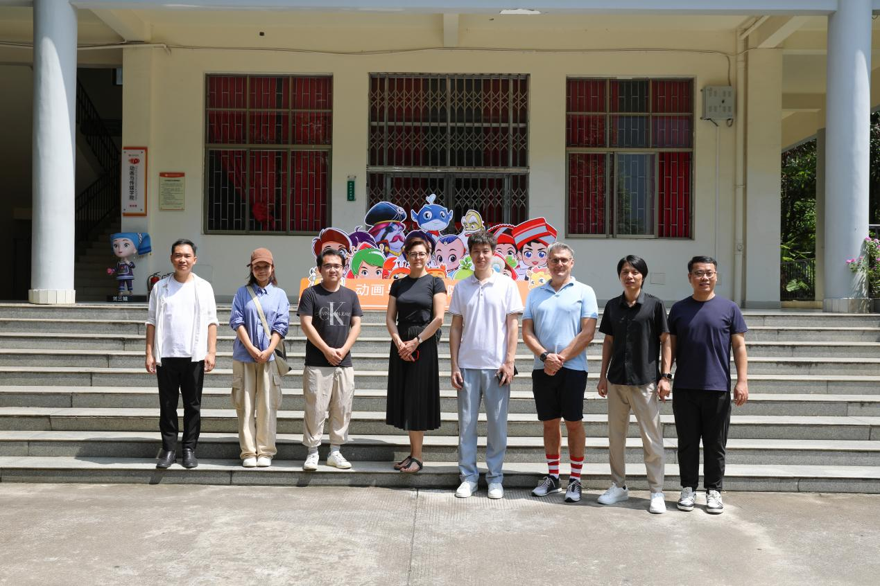参观结束后,双方在动画与传媒学院综合楼前合影留念。Norbert教授表示,此次访问让他对我校动画与传媒学院有了更深入的了解,也让他看到了两校在动画与数字媒体教育领域合作的巨大潜力。他期待未来能够更多的合作,促进跨文化交流