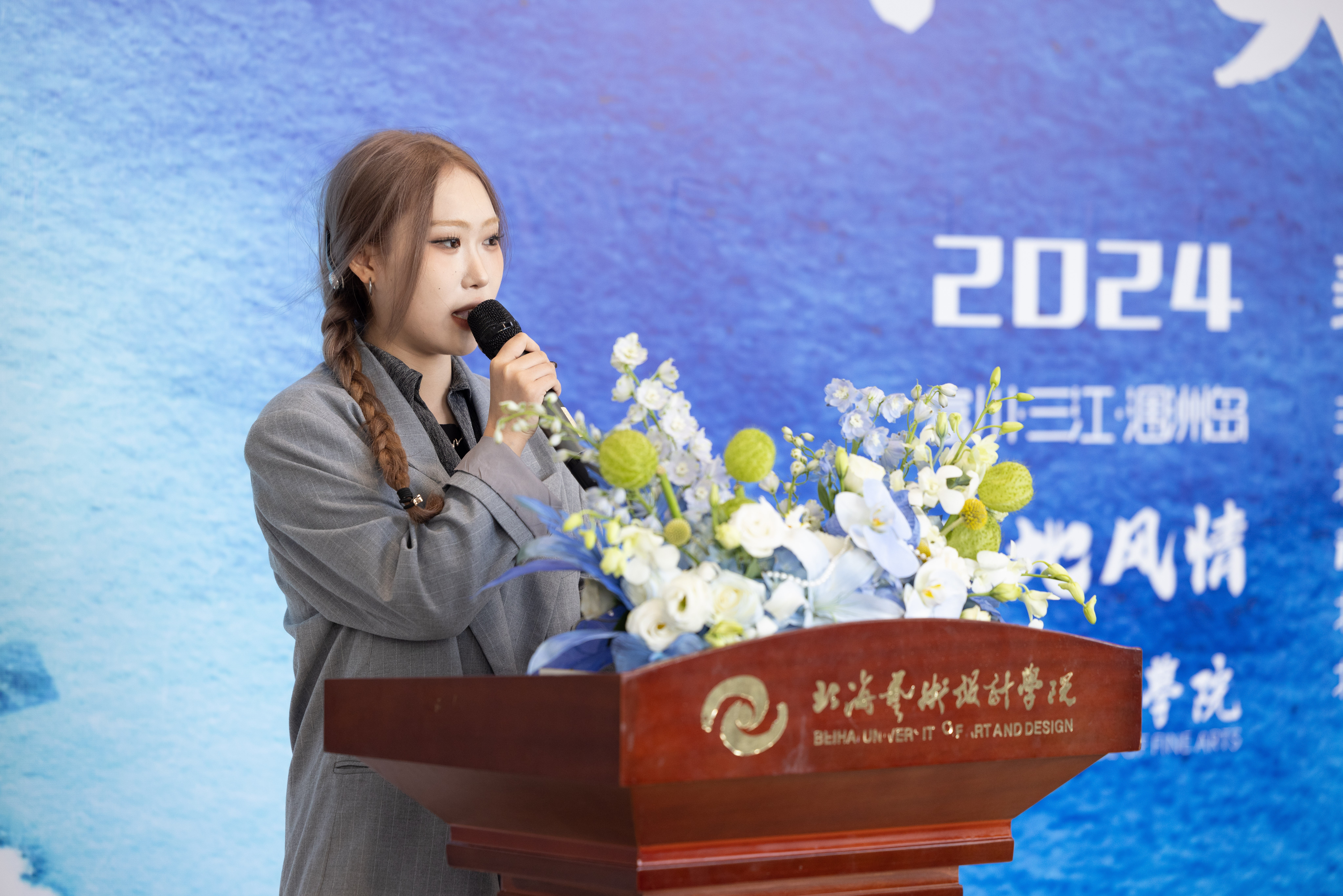 之后,学生代表周雅婷同学发言。他首先对出席开幕式的师生表示敬意。她分享了参与此次风景写生作品展的深刻体验,特别是前往富川等地写生的经历,让她感受到了大自然的壮丽与人文景观的深厚底蕴。她提到,每一幅作品都承载着师生们对美的追求与感悟,是艺术之旅的真实记录。通过写生,师生们不仅提升了绘画技巧,更学会了用眼睛去发现、用心灵去感悟自然与人文之美。
