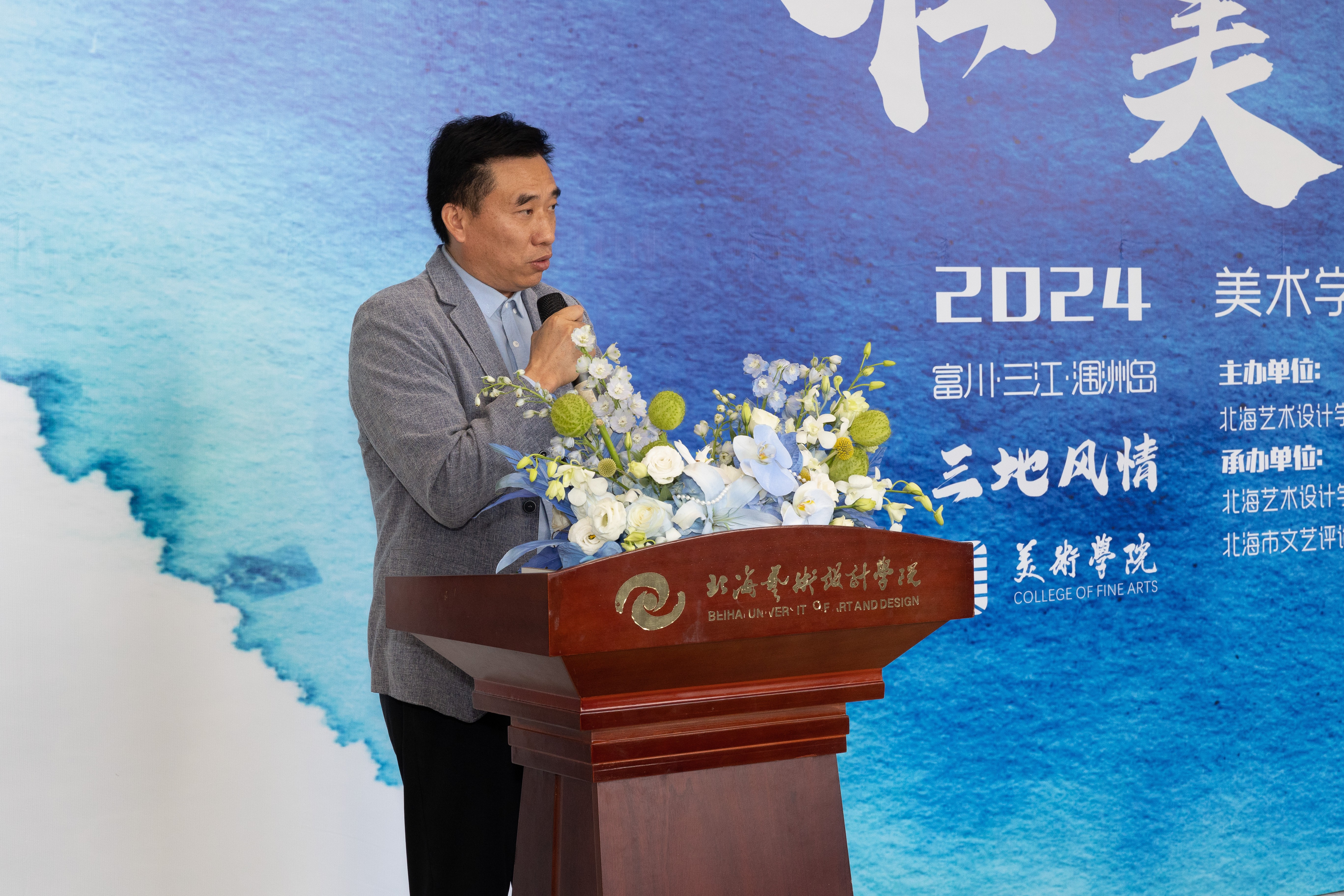 接着,陶立阳副校长发表讲话。他表示,美术学院一直以来积极贯彻党的二十届三中全会精神和党的教育方针,立足民族文化遗产,致力于推动广西文化的繁荣。他认为,广西这片富有魅力的土地,为美术学院师生提供了无尽的创作灵感,美术学院师生用画笔充分展现了广西各地独特的美。他强调,美术学院在教学中要始终坚持以人民为中心的创作导向,立足本土,提升创新能力,同时推动科学与艺术的深度融合。他相信,在美术学院师生的共同努力下,美术学院的建设和广西文化的繁荣都将取得更加显著的成果。