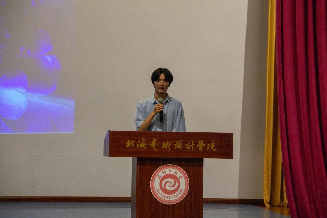 颁奖典礼上学生代表蒋力兵进行发言,他表示此次展览不仅仅是一次课程的结束,更是一段青春的落幕,其所带给同学们的不只是荣誉,更是学会了如何超越自我,向更好的方向迈进。
