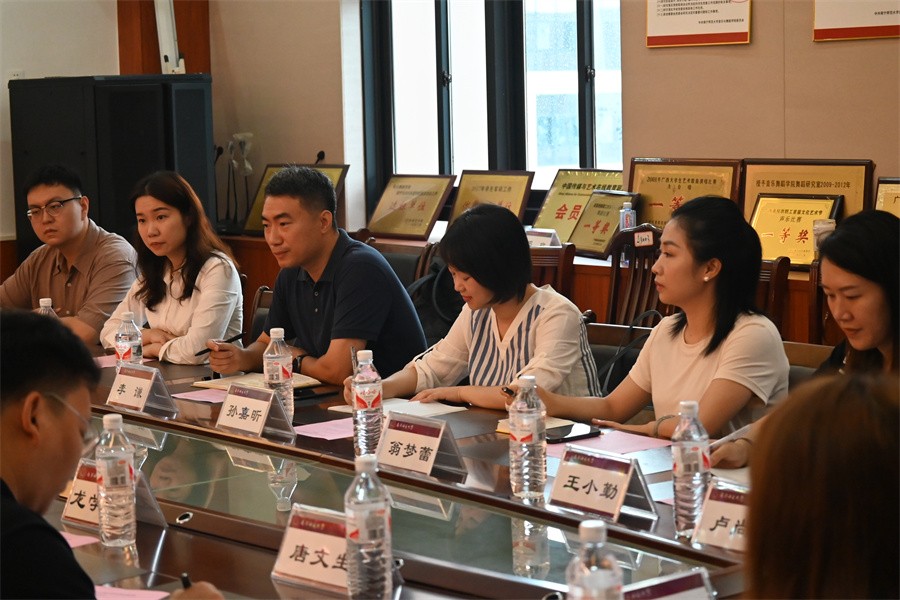 参观结束后,双方进行交流座谈。陈宇书记代表南宁师范大学音乐与舞蹈学院对我院一行的到访表示热烈欢迎。黄妙秋院长为我院考察团详细介绍了南宁师范大学音乐与舞蹈学院发展历程、师资队伍、专业建设等方面的情况,以及办学特色探索举措和教学成果。随后双方围绕音乐教育专业建设发展、舞蹈专业人才培养、学生见习实习研习及当前专业发展所遇到的瓶颈问题进行了深入探讨。