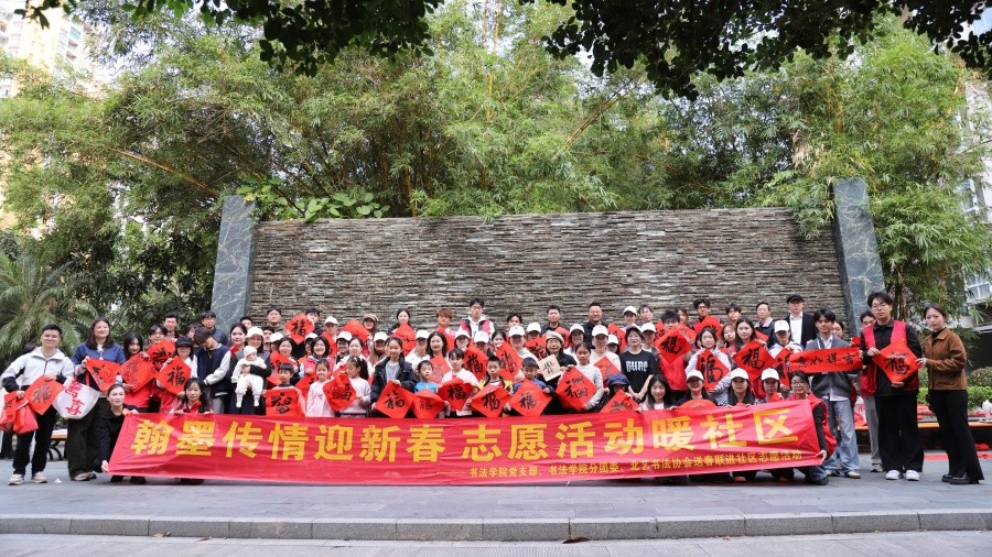 1月25日,橄榄苑社区内翰墨飘香、暖意融融。书法学院党支部联合学院分团委、北艺书法协会共同开展“翰墨传情迎新春”志愿活动,组织师生走进基层社区,以笔墨承载文化,以专业服务社会,为居民群众送上充满温度的新春祝福。