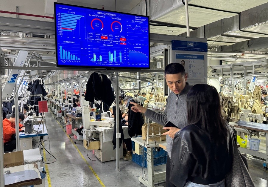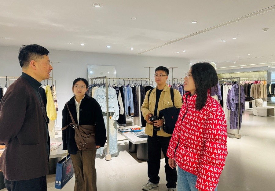 3月25日,调研团前往杭州临平浙江伊芙丽实业有限公司,参观了智能化生产车间与品牌总部,该企业供应链总经理田盛林对企业业务及行业趋势进行了全方位介绍并指出,时尚行业数字化、全球化转型背景下,企业亟需兼具数字化应用、供应链管理、新媒体传播等能力的复合型人才。此次交流为服装学院精准对接行业前沿需求提供了重要依据。