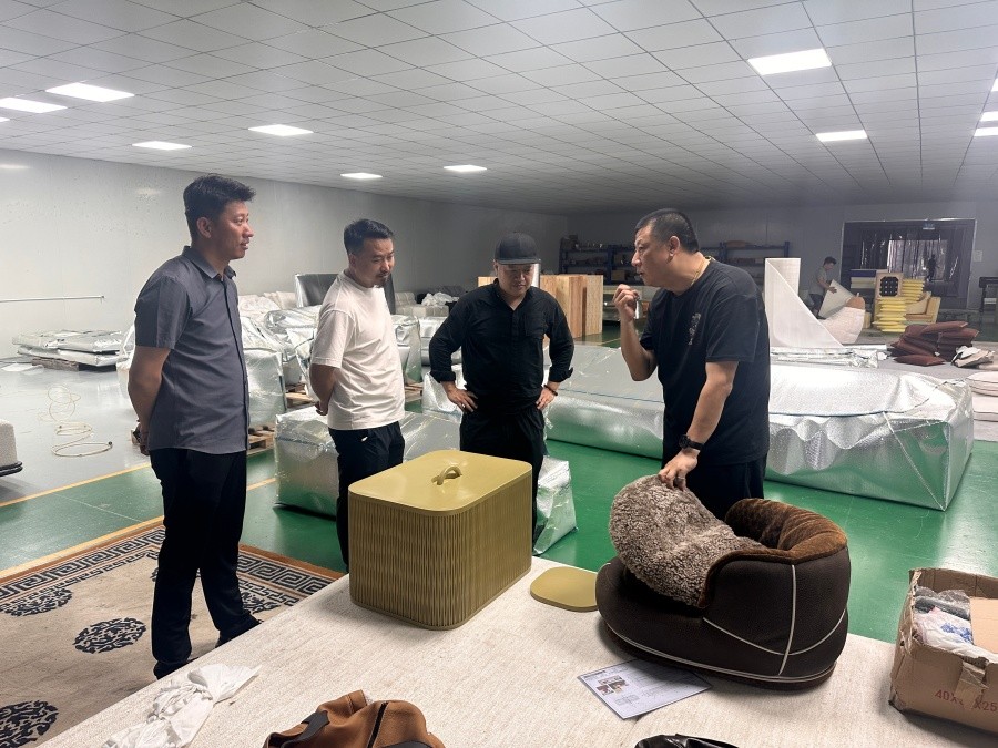 当日下午,考察组到访东莞韩舍家居有限公司,在公司总经理韩小平引导下,参观了现代化家居加工流水线及柔性定制生产工艺。据介绍,韩舍家居专注高端家居用品、软装配套及室内装饰工程,在布艺、木质与新型材料拼接工艺方面形成独特优势,将生活美学深度融入商业空间。双方围绕校企“产学研”合作、学生融入泛家居设计产业链等议题展开交流,重点探讨了从外观设计向空间体验设计的延伸路径,为学院环境视觉与产品设计交叉学科课程建设提供了丰富的商业案例与实践参照。